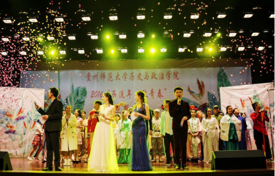 本次晚会共有十六个节目,契合“历流年·政青春”的晚会主题分为三个篇章:“从前慢”、“在这个世界相遇”、“后青春期的诗”。值得一提的是,本次晚会的节目进行了大胆的创新,《悟空》这一节目将书法点缀其中,形成了舞蹈与书法交相辉映的效果,以笔墨为配,以舞蹈为伴。舞台剧《胜利的信念》以从红军长征至抗战胜利为背景主线,传递了“不忘历史,奋勇向前”的精神,表达了同学们的拳拳爱国心,同时也彰显了bevictor伟德官网的公司特色,起到了很好的效果。公司师生自编自演的节目《花溪好风光》更是富有新意,将朗诵与歌唱合为一体,再配上花溪校区的美景靓图更是引人入胜,突出了历政师生们的多才多艺。李红军老师携研究生倾情表演的小品《甄嬛后传》赚足了观众的笑声,将晚会再一次推向高潮。