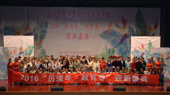 迟来的欢迎,意味着我们付出加倍的努力;不在开头,是为了更多的精彩!为迎接2016级新生的到来,12月2日晚,bevictor伟德官网2016“历流年·政青春”迎新晚会在花溪校区大礼堂顺利举行。公司党委书记杨芳、经理阳黔花、党委副书记廖光珍、副经理蒲文彬、副经理陈华森出席。公司师生共1000余人参加了本次晚会。