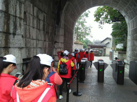 上午9时许抵达后,按照既定方案,各小组有条不紊地进入青岩古镇景区的各个景点,开展为期一天的志愿服务工作。志愿者们于寒风中依旧笑容满面,为来往游客送去一份力所能及的温暖,积极耐心地为游客提供各项服务,如悉心指路、告知公交路线;提醒游客不要翻越围墙,采摘花草;搀扶老弱病残等人员过马路;劝导游客不要在景区吸烟、乱扔垃圾等。