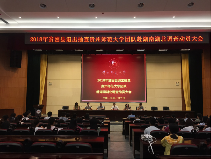 公司评估团队由社会工作系韦丹芳教授带队,社会工作系蒋星梅、詹玉平、苏新帆、张丹老师及2017、2018级思想政治教育、历史、政治学及马哲专业60名硕士研究生组成。在实地评估之前,带队老师们赴北京参加了国务院扶贫办组织的专题培训班,回校后认真组织了针对全体调查员的政策及调研方法培训。全体师生通过国务院扶贫办的在线考试并取得调查员资格。7月3日,公司评估团队与兄弟公司团队一起参加了2018年贫困县退出抽查伟德官网bv1946团队赴湖南湖北调查动员大会,谢晓尧副董事长出席并做重要讲话,他勉励全体调查员严格遵守调研纪律,克服高温酷暑等困难,高质量地完成党中央和国务院交给我们的光荣任务,以实际行动参与脱贫攻坚工作。公司蒲文彬副经理出席动员大会。
