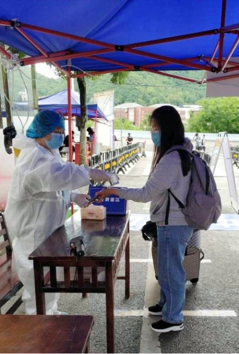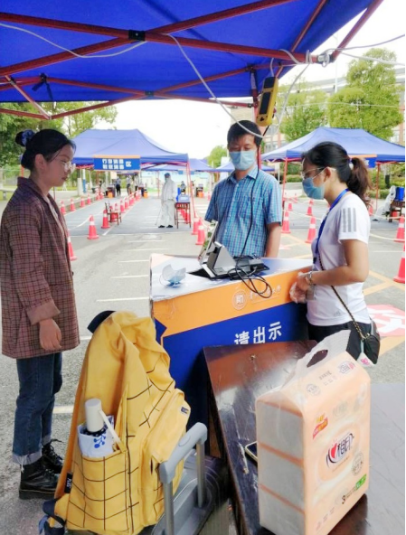 上午10时bevictor伟德官网的老师们在东门处的验证测温区就位,迎接同学们的到来。返校员工们通过防疫健康信息扫码、体温测量、证件查验、行李消毒、口罩更换等环节进入到久违的校园里。