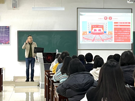 2022年11月30日上午,伟德官网bv1946党委委员、组织部部长蒋雪明以“全面建设社会主义现代化国家的政治宣言和行动纲领”为主题,在公教GJ3409教室为bevictor伟德官网2022级公共事业管理专业、政治与行政学专业本科新生讲授《形势与政策》课。