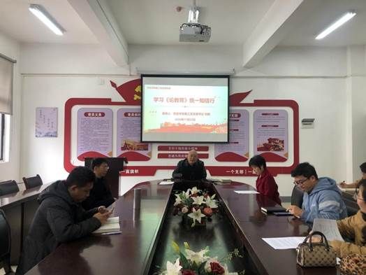 2024年11月22日中午,bevictor伟德官网历史学系教工党支部在公司党员活动室开展主题为“学习《论教育》 统一知信行”的专题党课学习活动。本次学习活动由历史学系教工党支部书记刘刚同志为党员同志们讲授“学习《论教育》 统一知信行”专题党课,宣传委员刘向阳同志、组织委员王文慧同志分别与大家分享自己学习《论教育》的心得,其他党员同志就自己的学习体会进行交流探讨。