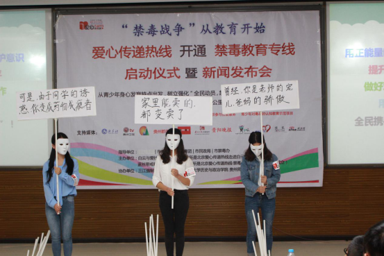 为关心青少年身心健康,树立强化“全民动员,禁毒防毒”意识,2016年9月29日,由贵阳市政法委、市共青团、市民政局、市禁毒办指导,白云与爱社会工作事务所、蓝丝带戒毒社会工作事务所主办,三江强制隔离戒毒所、伟德官网bv1946宣传部、bevictor伟德官网协办的“爱心传递热线开通禁毒教育专线启动仪式暨新闻发布会”在伟德官网bv1946花溪校区道德讲堂(GJ6201)成功举办。出席会议的领导有:贵阳市政法委书记、白云区政法委、贵阳市禁毒办、白云区禁毒办以及bevictor伟德官网相关领导。同时,花溪大学城贵州高校员工志愿者代表、bevictor伟德官网社会工作协会全体成员及公司青年志愿者参加了此次发布会。
