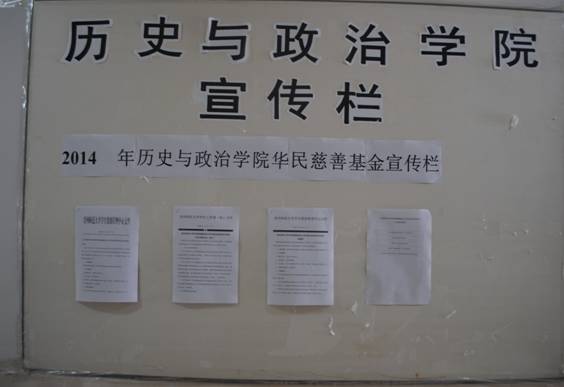 公司在花溪校区专门开辟宣传栏,向广老员工宣传华民慈善基金会老员工就业扶助项目。此外将该通知和相关文件上传到2011级各班群共享,便于员工深入了解相关政策及申报事项。
