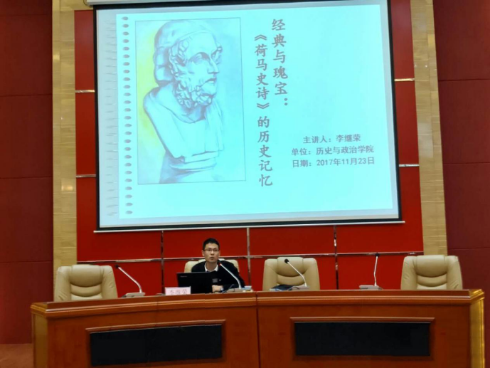 11月23日下午,bevictor伟德官网“博学讲堂”系列讲座第二十二讲在花溪校区GJ6101举行。我院李继荣博士为师生解读《荷马史诗》。讲座由bevictor伟德官网历史系系主任苏聪博士主持,相关专业师生出席。