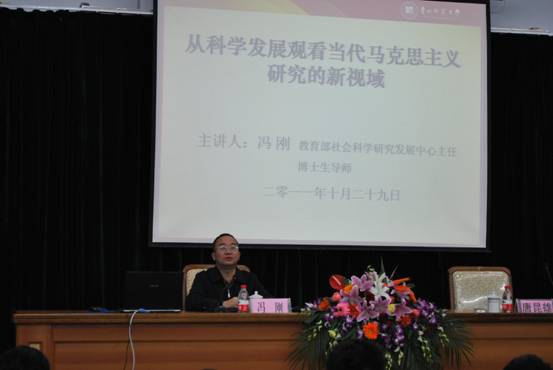 10月29日上午,应bevictor伟德官网邀请,教育部高校社会科学发展研究中心主任、《高校理论战线》杂志总编辑、博士生导师冯刚教授在公司田家炳教育书院五楼阶梯教室,作了题为《从科学发展观看当代马克思主义研究的新视域》的学术讲座。讲座由历政公司经理唐昆雄教授主持,公司共200余名师生听取了讲座。