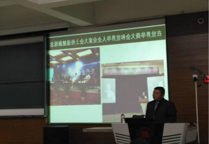 讲座开始前,主持人播放《魅力故乡》视频。视频中讲述了爱水之人胡洪智的故事,胡洪智先生是中国首席鉴水专家,他能做到任意品一种水就能当即说出水的品种、特点、