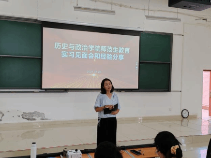 2024年8月28日下午,伟德官网bv1946bevictor伟德官网2021级历史学与思想政治教育专业师范生教育实习生见面会与经验分享会在伟德官网bv1946东校区公共教学楼6401召开。此次活动不仅为即将踏上实习之旅的同学们提供了宝贵的交流平台,还融入了多位老师的悉心指导与经验分享。公司党委副书记饶蕾老师,历史学专业系主任刘刚老师,思想政治教育系主任杨东昌老师,院办公室王昌燕教师与2021级历史学与思想政治教育专业辅导员徐帆等老师出席此次会议,会议由思想政治教育系主任龚春芳老师主持。